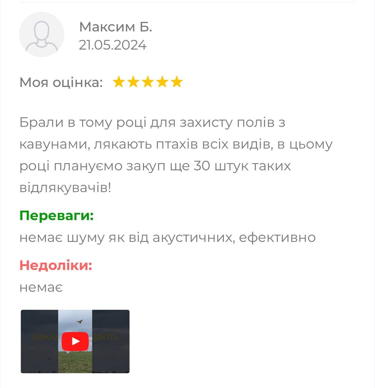Наш "Фенікс" - один з найдієвіших гуманних відлякувачів птахів з опитувань користувачів